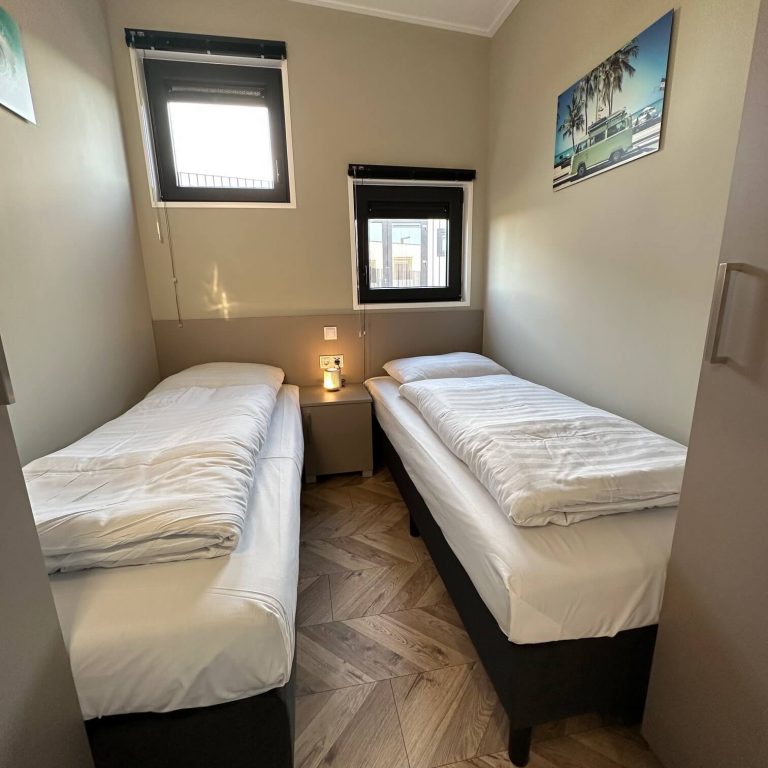 Die 3 Schlafzimmer teilen sich in ein Schlafzimmer mit Doppelbett und Schrank sowie 2 weiteren Schlafzimmern mit jeweils 2 Einzelbetten und Schränken auf. Hier finden sich auch ein 2. Fernseher und die PlayStation. Wir mögen es gern etwas bequemer – und haben daher die Betten im Elternschlafzimmer mit Komfort-Toppern ausgestattet, um den Schlafkomfort zu verbessern und auch einem verwöhnten Rücken geruhsame Nächte und Entspannung zu ermöglichen