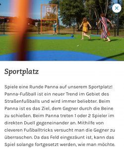 Park und Umgebung sind damit für alle Altersklassen, jüngere und größere Kinder, Teenager, Erwachsene und Senioren gut geeignet.